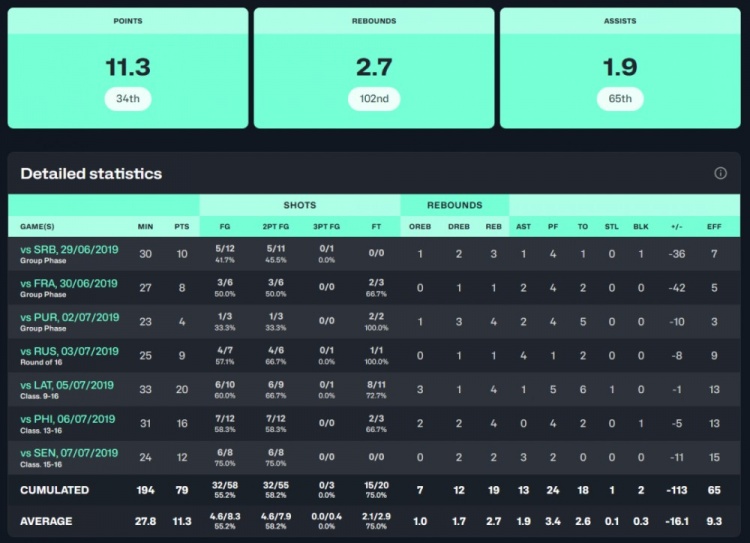 另外需要强调的是,两战韩国,他是少数正负值不是负数的主要轮换(他和廖三宁搭档效果其实不错,两人同时在场正负值大概有+20)……